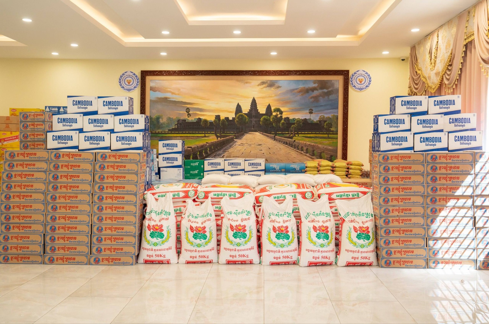 អំណោយរបស់ ក្រុមហ៊ុន វេនធូរ៉ា លេឌើវែរ អឹមអេហ្វវ៉ាយ (ស៊ីធី) ឯ.ក មាន៖ អង្ករ ចំនួន ២.៥តោន មីខ្លាឃ្មុំ ចំនួន ១០០កេស និងទឹកសុទ្ធ (ចំណុះ៥០០មល) ចំនួន ១០០កេស៕